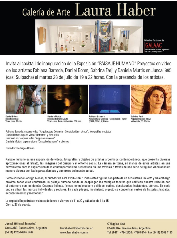 Galería Laura Haber invita a la inauguración de la Exposicición "Paisaje Humano", Proyectos en video,